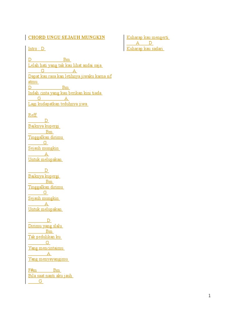 Chord Sejauh Mungkin C : Yang mencintaim g u yang menyayangi a mu.