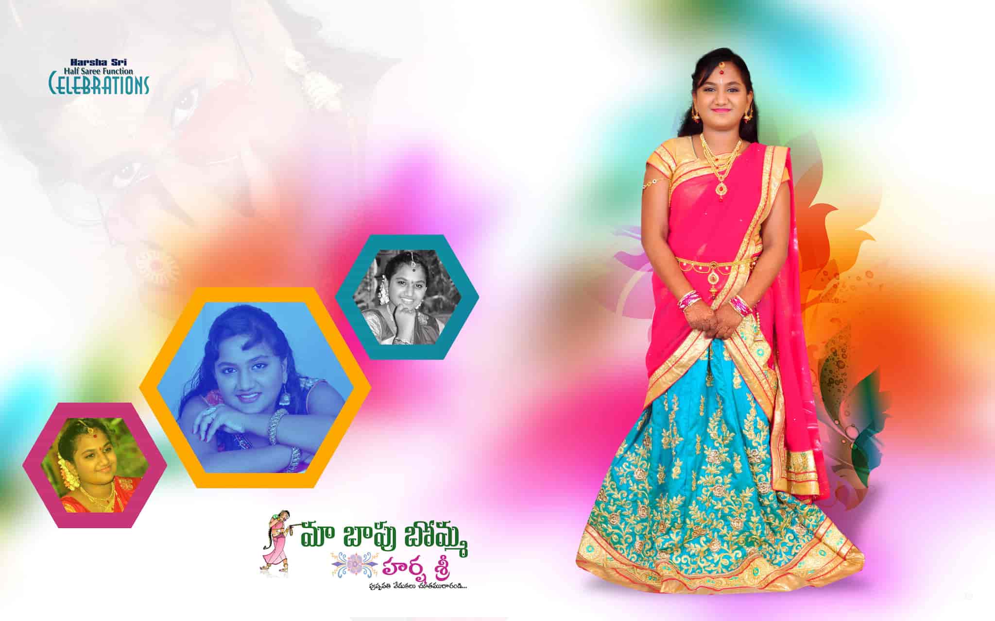 Half Saree Function Outdoor Stills / With two different colours on the.